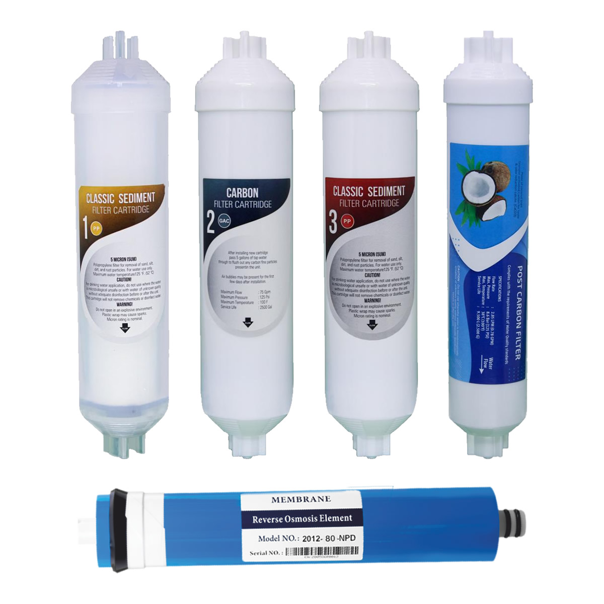 Roby 5’li Filtre Seti, filtre hazneleri (housing) bulunan klasik su arıtma cihazları için özel olarak bir araya getirilmiştir. 3 ön filtre kartuşu, suyunuzu membrana girmeden önce tortu ve klordan mükemmel şekilde arındırır. 80 GPD gücündeki Roby Membran, suyun moleküler düzeyde temizlenmesini sağlar. Son aşamadaki Euro Post Karbon, suya doğal kaynak suyu lezzeti verir.